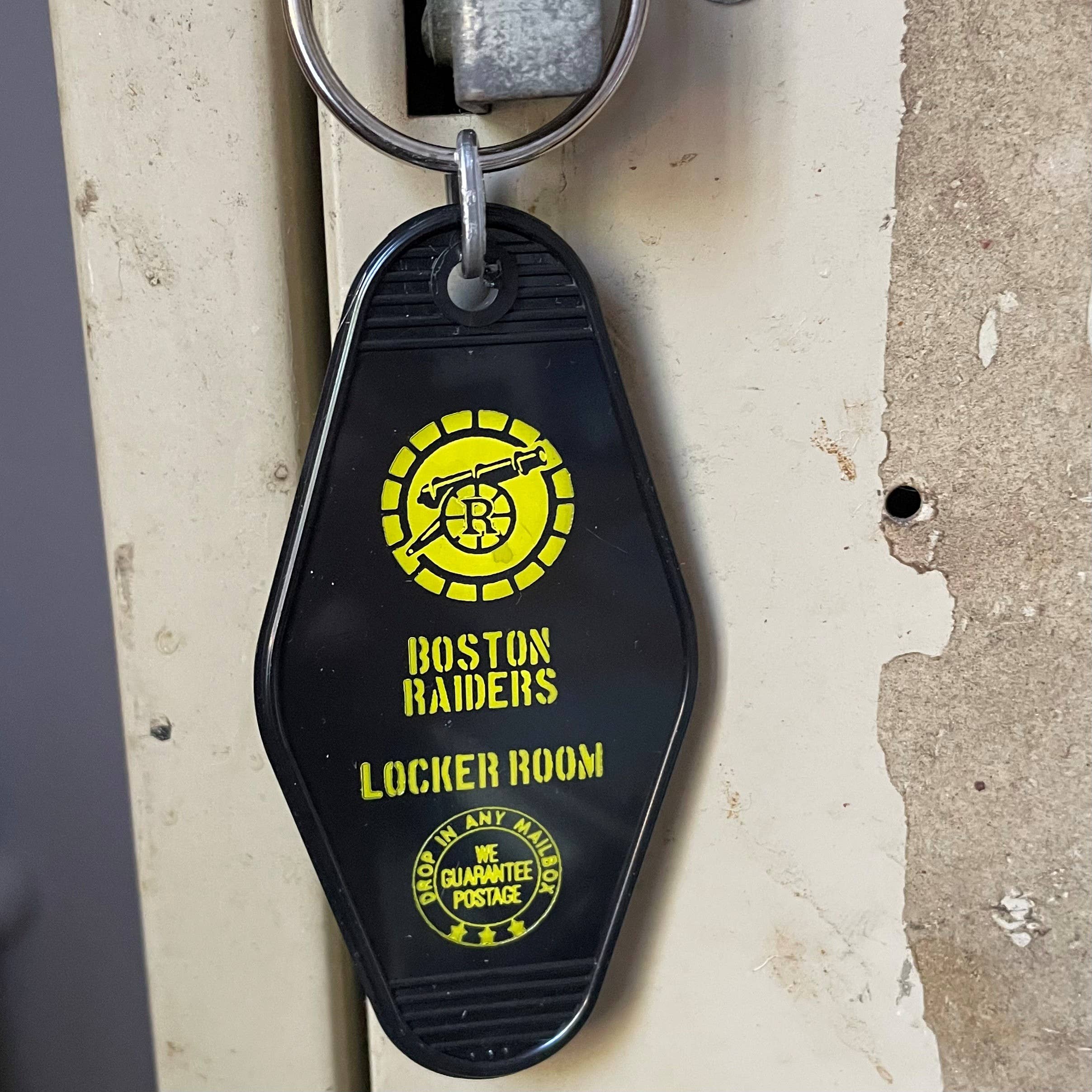 We're coming to the cottage! Vintage style motel key fob, complete with 32 mm slip ring, featuring one of the hockey teams, Boston Raiders, from Heated Rivalry/Game Changer.