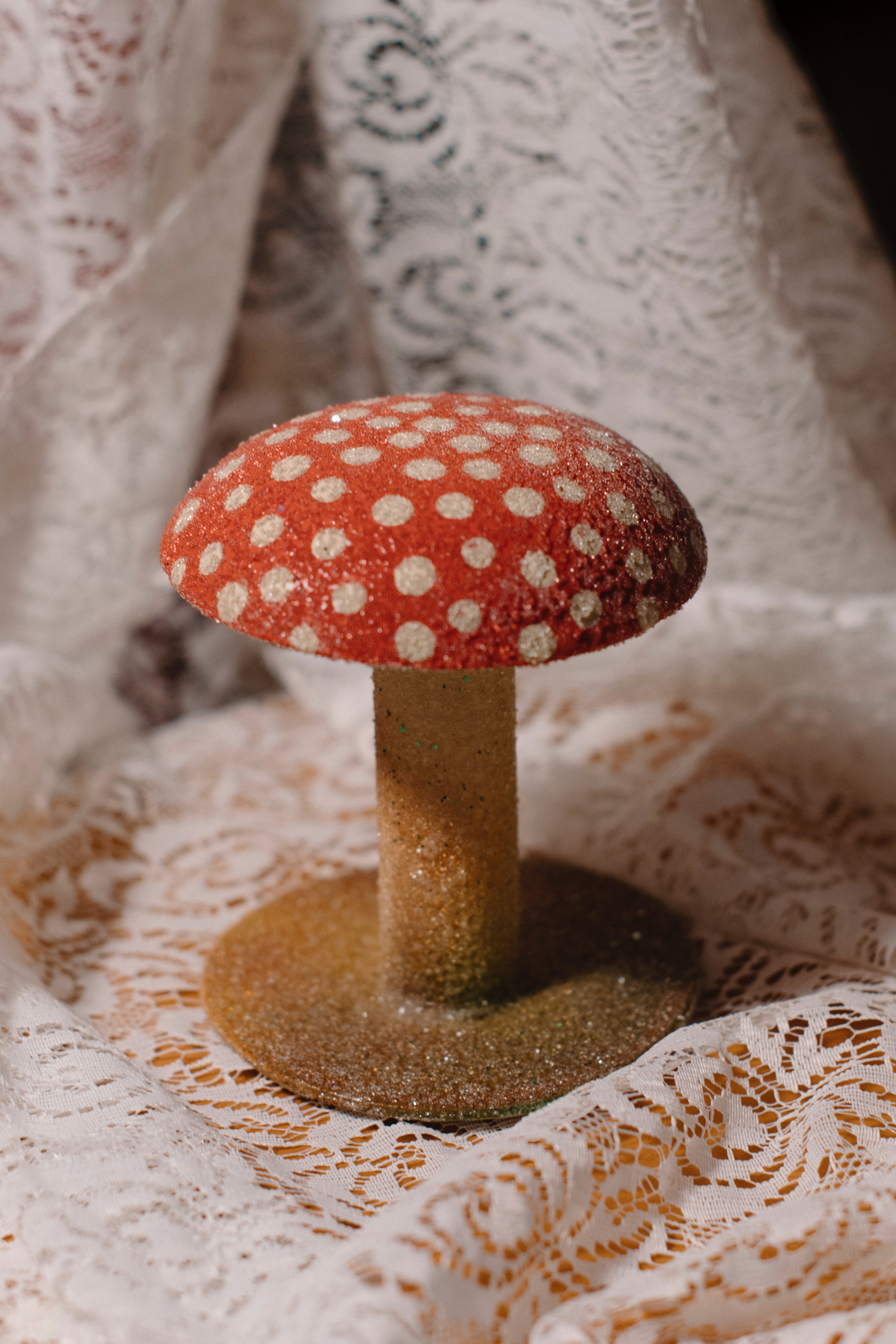 These exquisitely detailed papier-mâché mushrooms are custom made for us in Germany by Ino Schaller, a family business using traditional papier-mâché methods and the same molds their ancestors developed since 1894. There is a seven day process to create each one of these stunning heirloom items.
