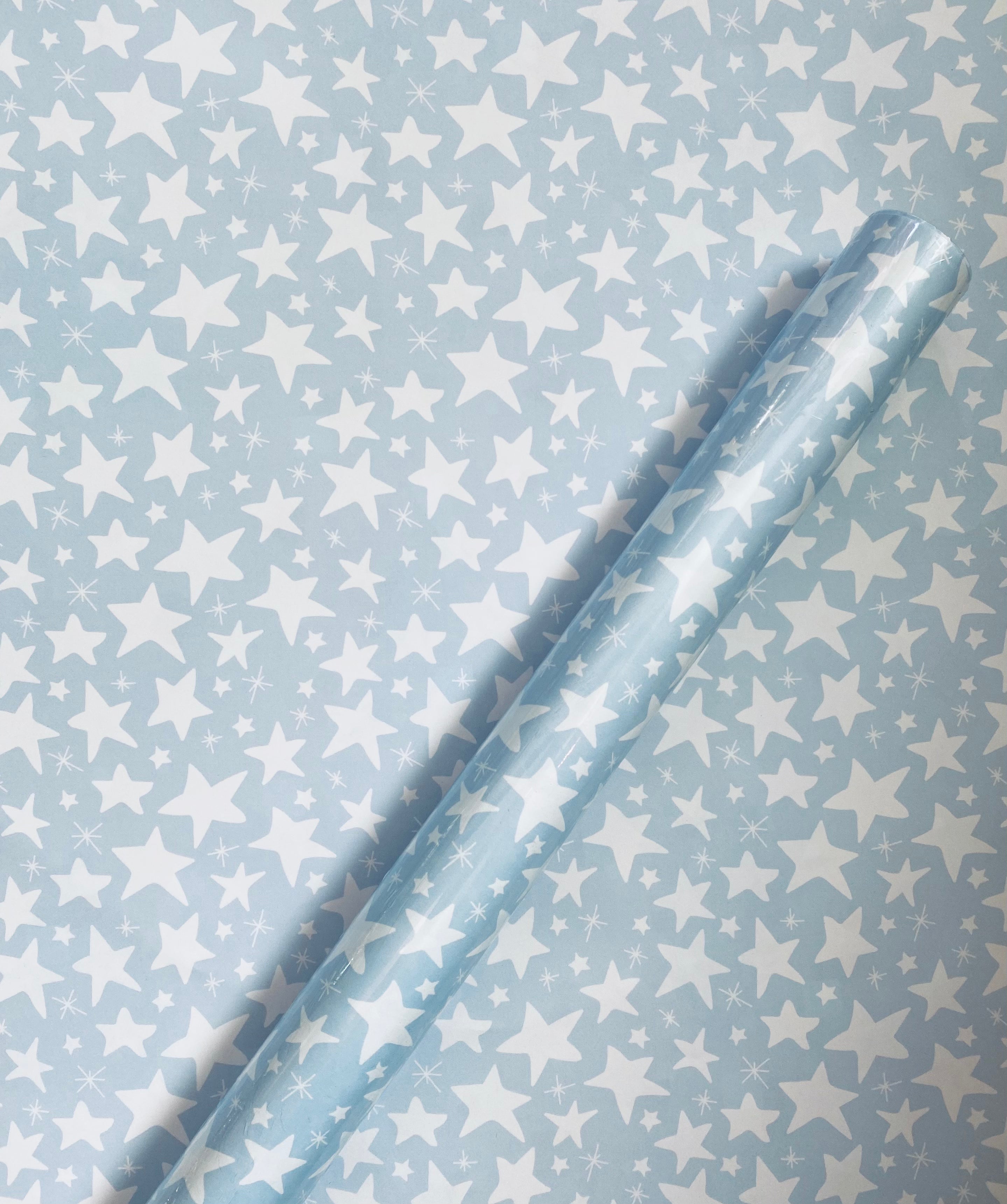 Fresh for our 2025 gift wrap collection, this icy blue star paper has the same wonky stars we used in our shop displays.