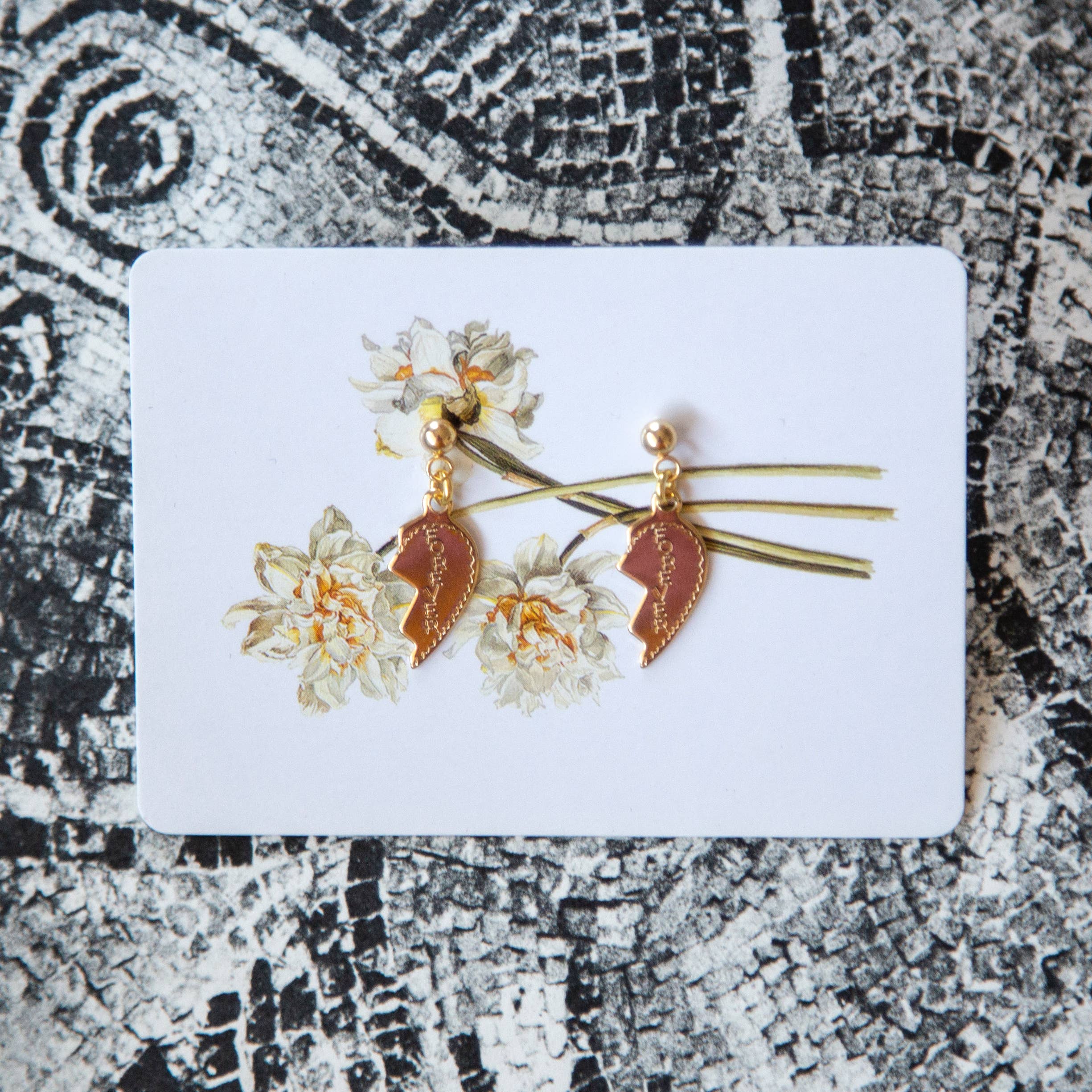 Deadstock vintage gold-plated broken heart charm with "forever" text etching on gold vermeil posts (2X industry standard gold-plating on hypoallergenic, 100% recycled sterling silver). All charms are secondhand & vintage to reduce our impact on the environment - some typical aging is to be expected but gives these pieces character. 20mm X 9.5mm charms