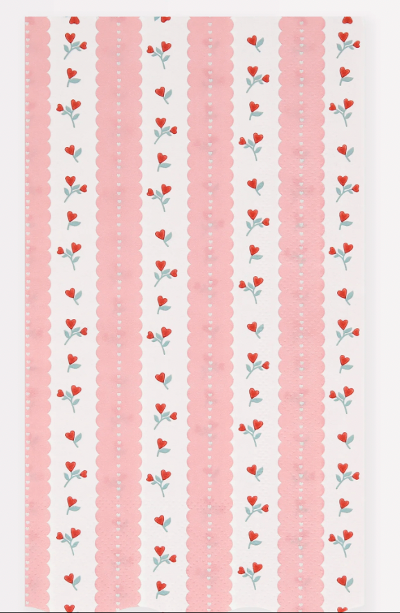 This beautiful vintage-inspired design, based on antique floral wallpapers and tablecloths, is perfect to set the mood for a loving celebration. Look carefully and you'll see the romantic red rose pattern has love heart buds - it's this extra attention to detail which makes these pink and red Valentine's heart guest towels so special. These longer napkins are ideal for table layering, or you can place them in a guest bathroom.