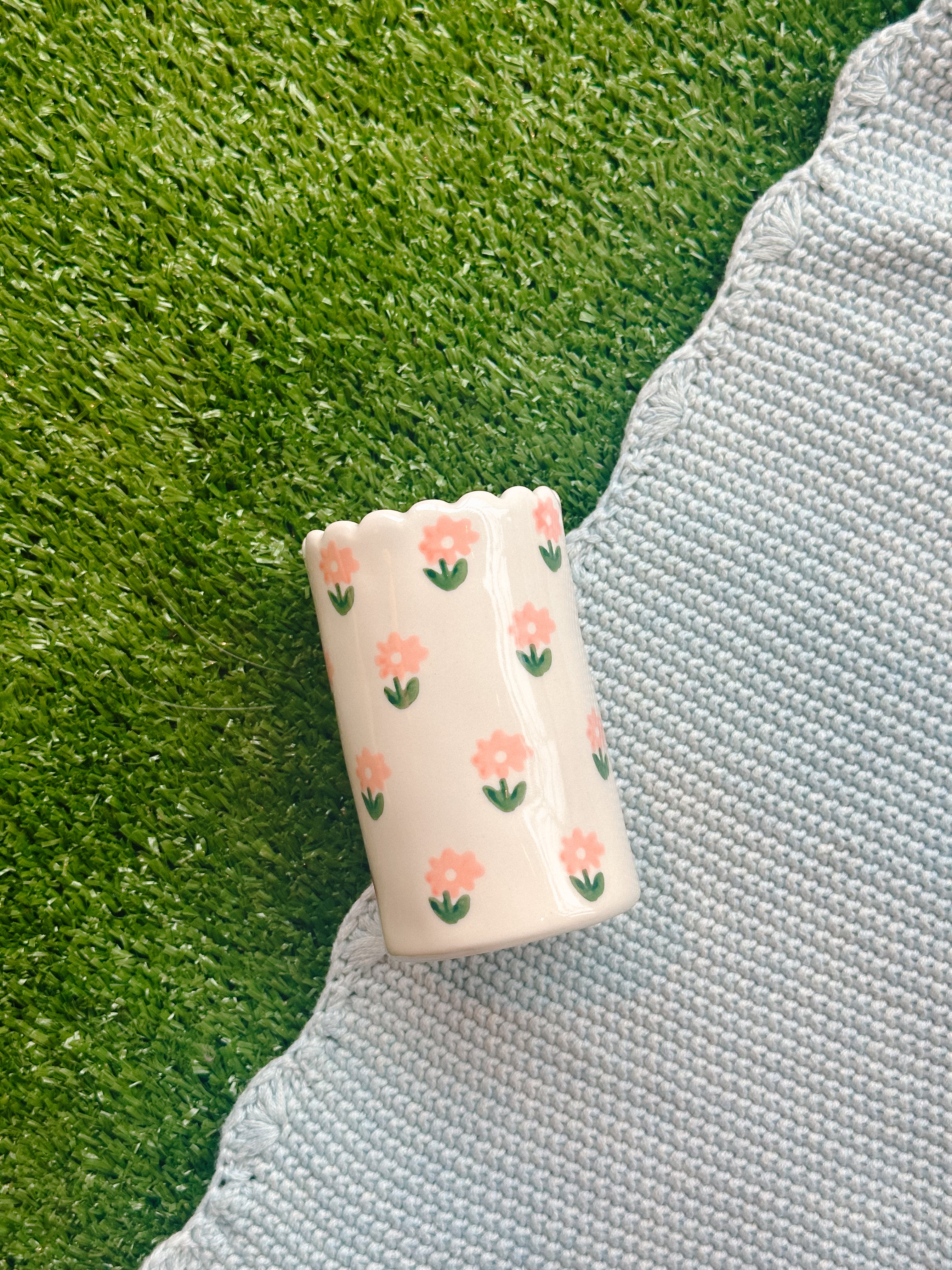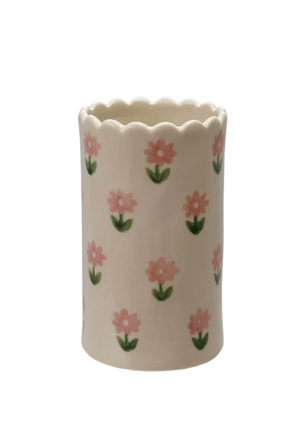 This cheerful little vase stands at 4.5" tall, perfect for your favorite spring flowers!